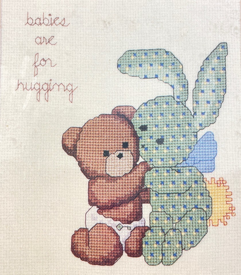 Dale Burdett Cross Stitch Babies Are For Hugging Country Bear and Bunny