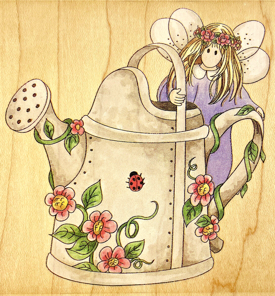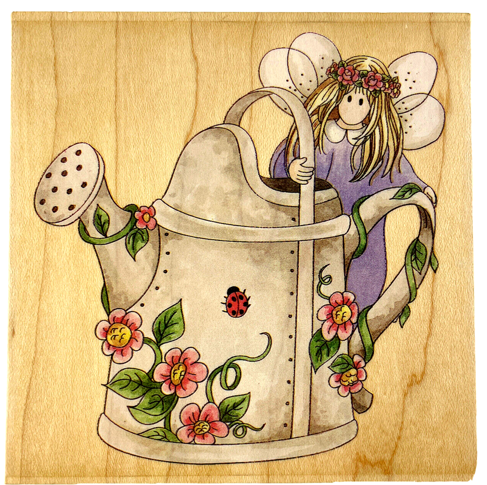 Stamps Happen Periwinkle 70022 Garden Fairy Watering Can Rubber Stamp