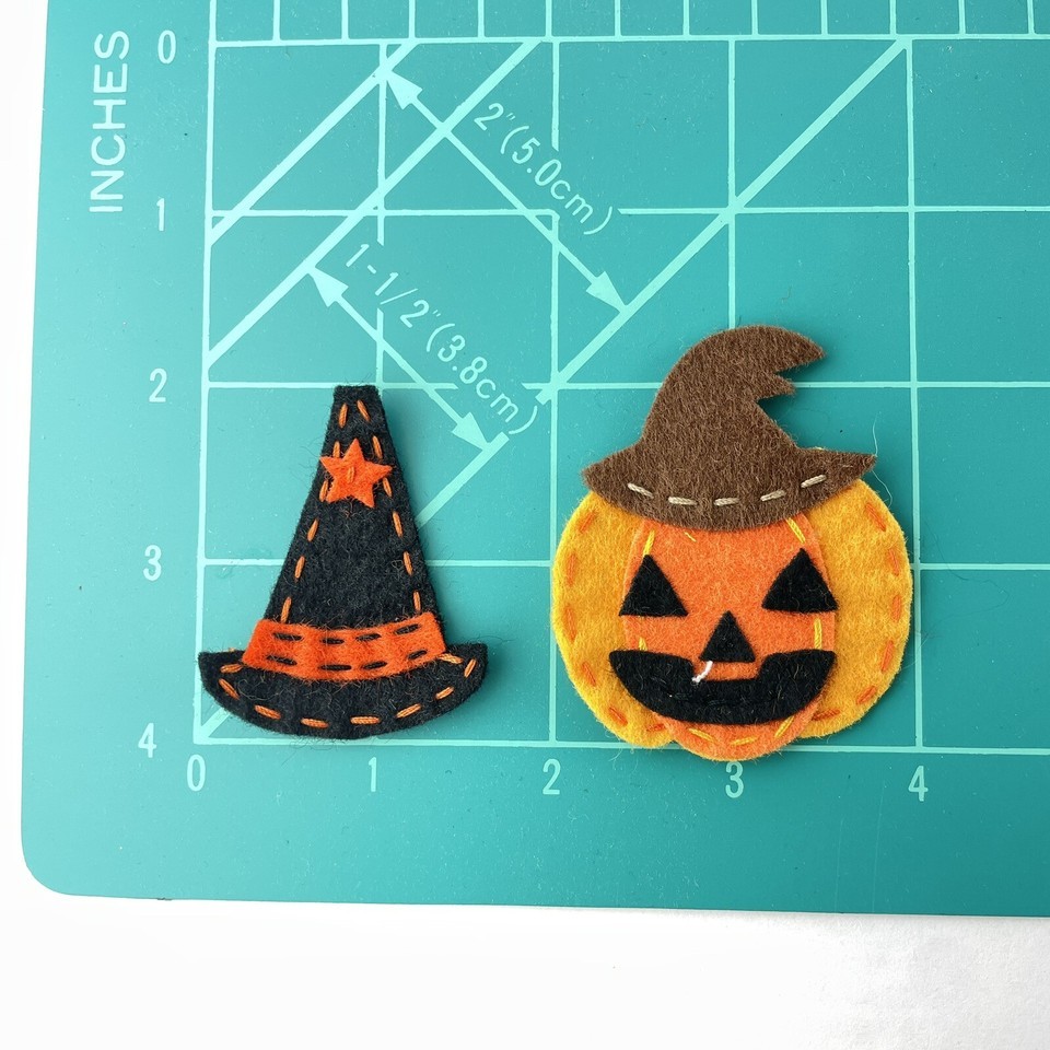 Halloween Felt Patches 3 Witch Hats and 2 Pumpkins Orange Black 2" Craft Sewing