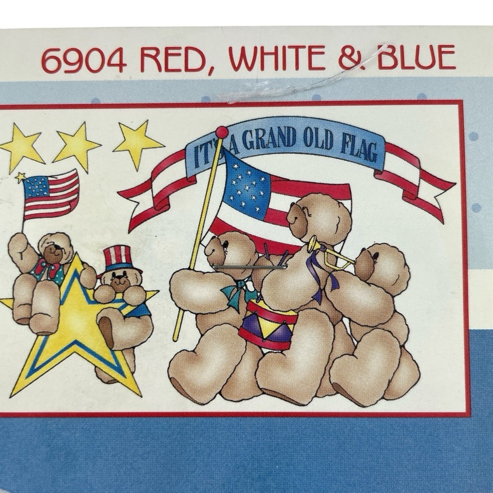 Features a teddy bear band in patriotic red, white and blue colors.