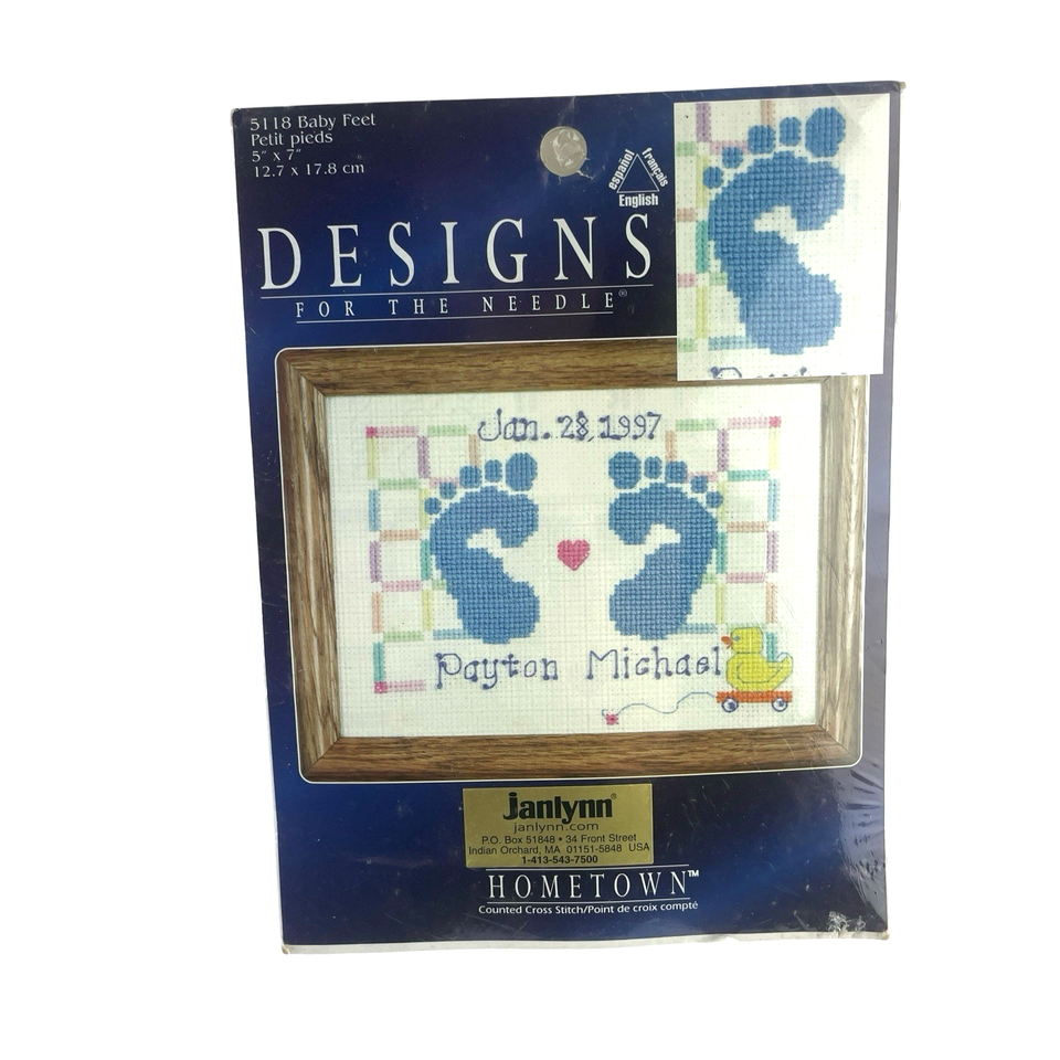 Janlynn Counted Cross Stitch Kit Baby Feet Birth Record 5118 Vintage 90s