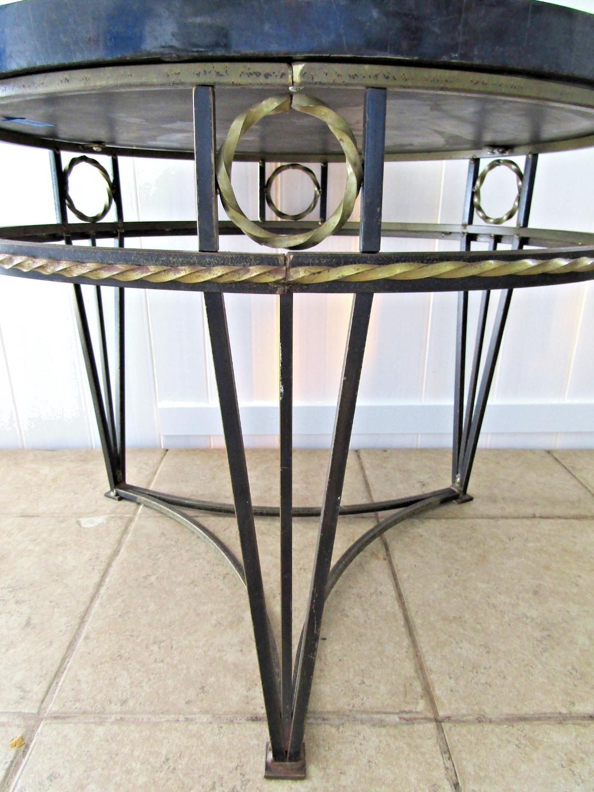 Vintage Maitland-Smith Hollywood Regency Style Marble Inlay Iron Accent Table