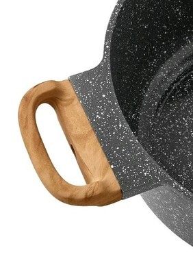 Pan measures approximately 9.5" diameter x 18" wide (including handle) x 3" tall (without lid)