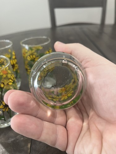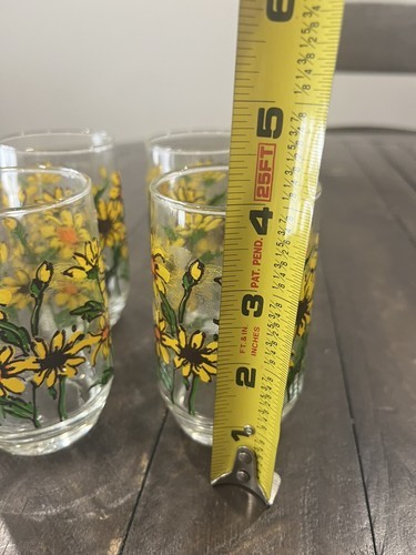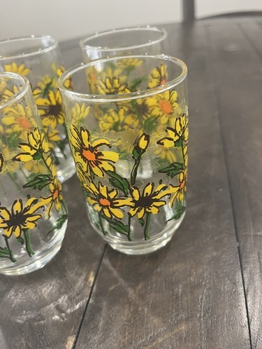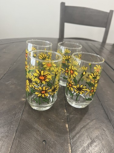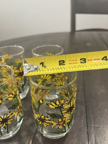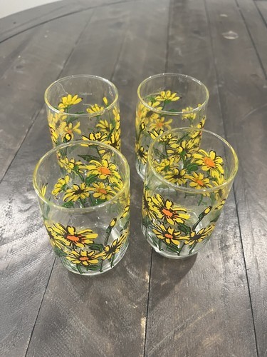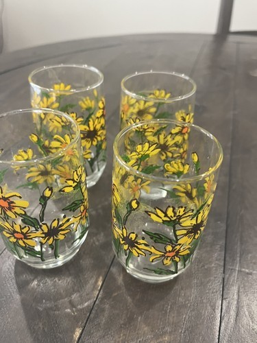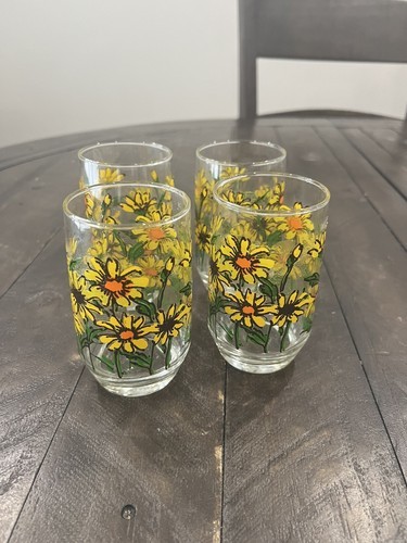 Vintage Sunflower Daisy Juice Tumbler Glass 6 oz. 4 inches Tall Set Of 4
