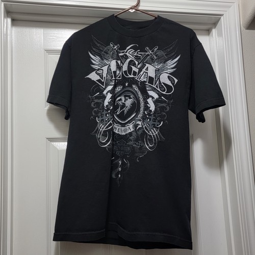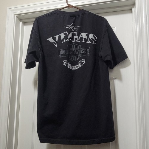 Excellent Condition Harley Davidson Las Vegas, Nevada Black / Silver Eagle / HD Graphic Two-Sided Shirt 2013. No Size Tag. Actual measurements: 42" chest, 30" length. Men's Medium. Nice.
