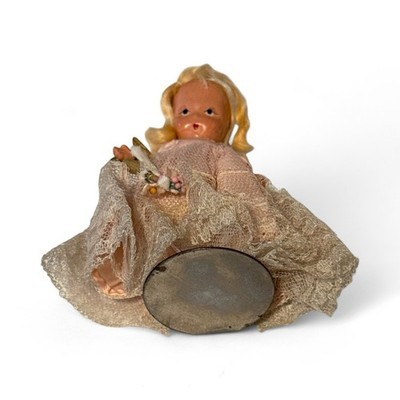 Condition: She comes with her original arm tag. No Box. Her arms and legs are moving. 4.5" She has her bouquet of flowers on her dress. Her hair seems like it is missing some in the front. Maybe needs readjusted. No lace head piece.