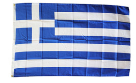 Made of a high quality polyester material, our Dura-Poly Greeceflag measures 3' x 5' and includes vivid colors and an accurate design. Screen-printed on a durable 150 denier shiny polyester material and finished with a double stitched hem, this flag features a white fabric header with two brass grommets on the 3' side for easy display. The flag is best used indoors but can withstand occasional outdoor use. The authentic design is based on information from official sources.