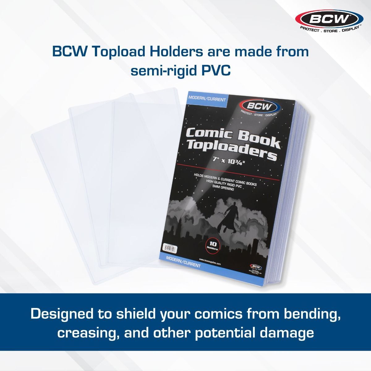 The rigid PVC used in the BCW comic toploaders contain no plasticizers or stearates. Our high quality PVC does not migrate and will not harm your comics, photos or prints, while offering maximum protection and visual appeal.