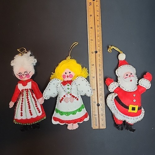 VTG Bucilla Christmas Foursome 3 Felt Jeweled Holiday Christmas Ornaments 2339