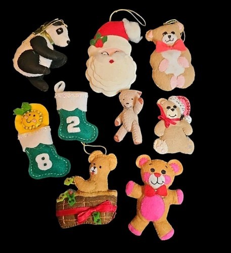 VTG Mixed Lot of 9 Handmade Felt Jeweled Sequined Christmas Ornaments Panda