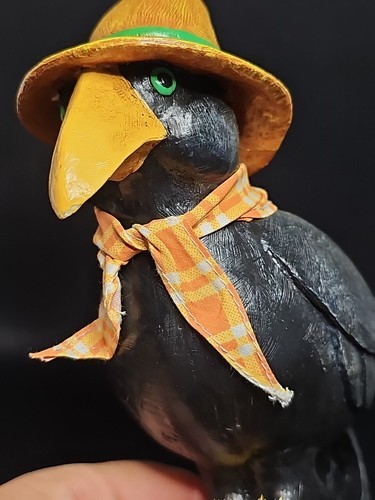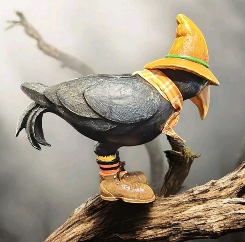 UP FOR SALE: Dept 56 Halloween Crow Votive Holder Hat Scarf Boots Raven Blackbird Scarecrow