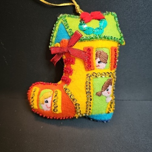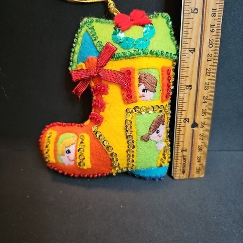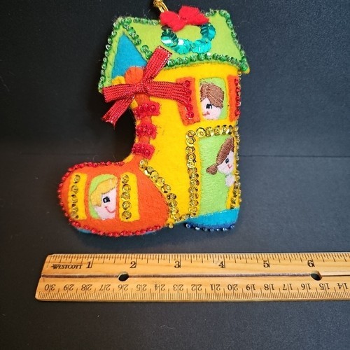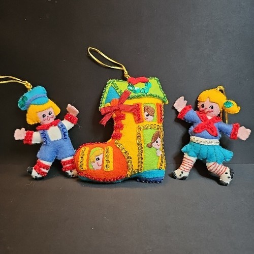 VTG Bucilla Old Woman in the Shoe Felt Jeweled Beaded Sequin Christmas Ornaments