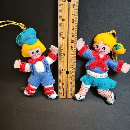 UP FOR SALE: You are buying one, maybe multiple handmade Felt Jeweled, Sequined, Hand Embroidered Vintage Ornaments. Most appear to be made from kits, such as Bucilla, ( I have added kit numbers in when I can), some could have been made using old patterns. All are hand made, all are hand stitched, and all have come from the same estate. They were made and displayed with love for many years. I feel very lucky to have been able to acquire this amazing collection of items to share with you.
