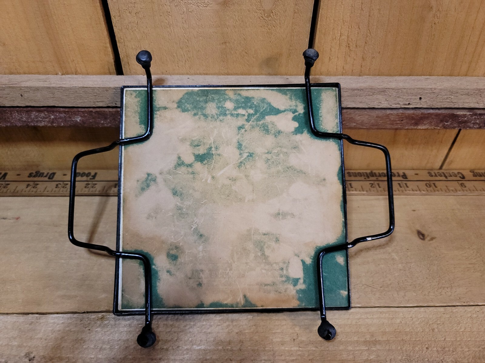 Lefton Made in Japan, MCM 1950s-1960ish era. Good overall condition--you can pop the tile out of the metal holder if you wish. The rubber pads on the feet are dying and the legs need a little tweaking--all up to you!