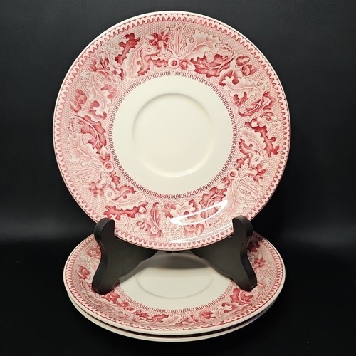 Johnson Brothers Pink Historic America 3 Saucers for Flat Cream Soup Bowl 6.25"