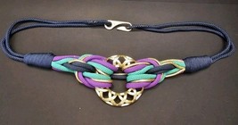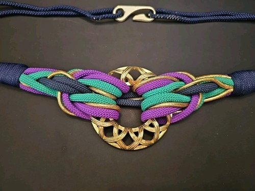 Vintage 80s Statement Braided Belt Womens Purple Green Blue Colorful Medallion