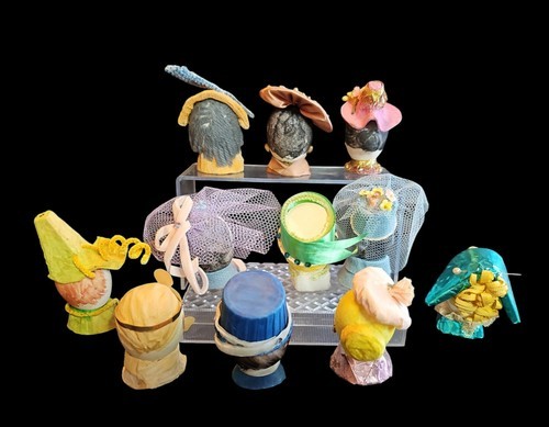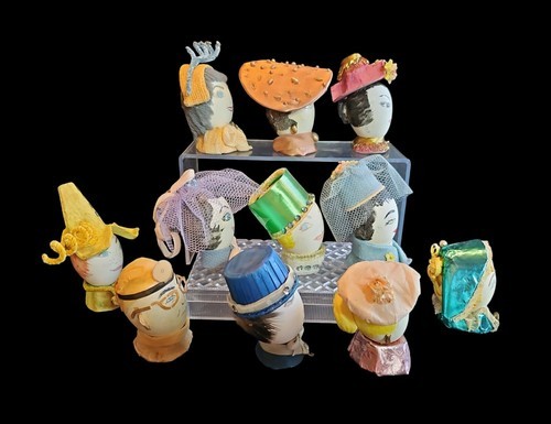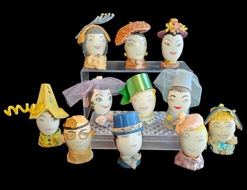 1950s Egg Head Handmade Party Favor Card Auxiliary Clubs 11 Fancy Ladies Vintage