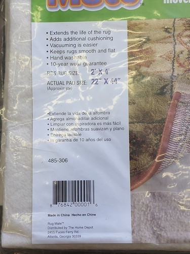 Rug Mate 2' x 4' Carpet Pad - KEEPS RUGS FROM MOVING ON CARPETS NOS