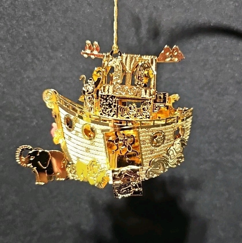 UP FOR SALE: Danbury Mint 2001 Annual Gold Christmas Ornament ? ?Noah?s Ark?