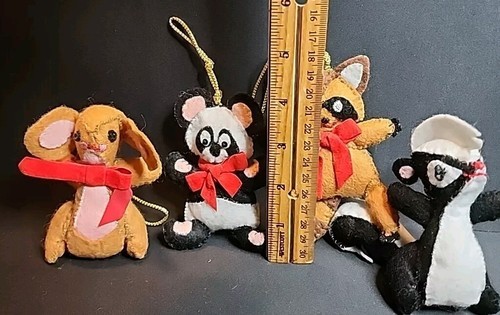 UP FOR SALE: VTG Bucilla Furry Friends 4 Felt Jeweled Sequined Christmas Ornaments 48617