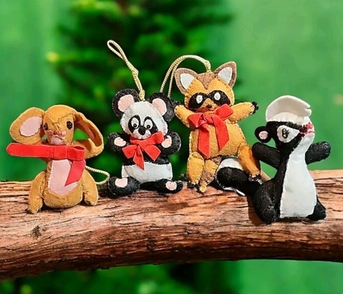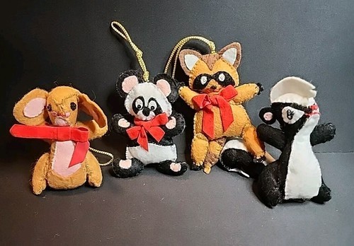 VTG Bucilla Furry Friends 4 Felt Jeweled Sequined Christmas Ornaments 48617