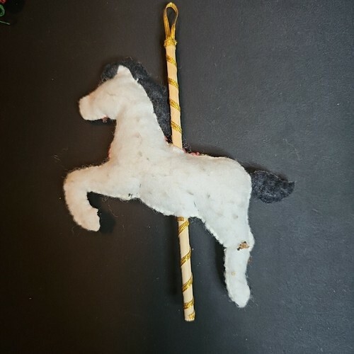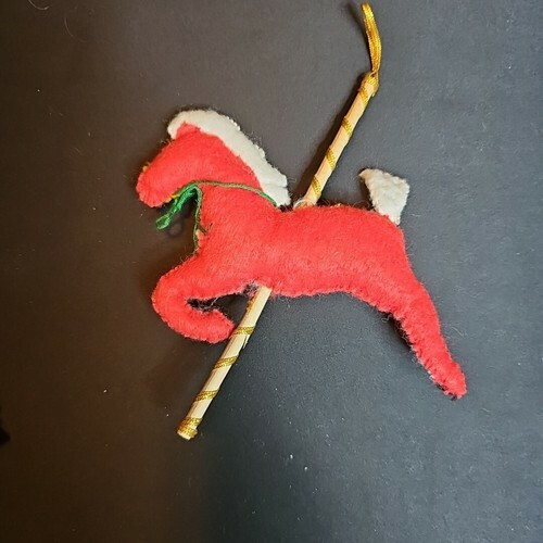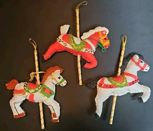 VTG Felt Jeweled Sequined Christmas Ornaments Set of 3 Carousel Horses
