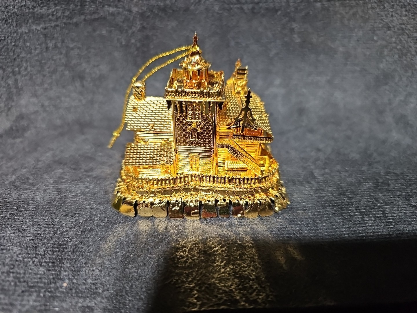 Crafted in high detail and electroplated in 23kt gold, it represents the Boston Harbor Lighthouse, one of the most historic and recognizable beacons on the East Coast.