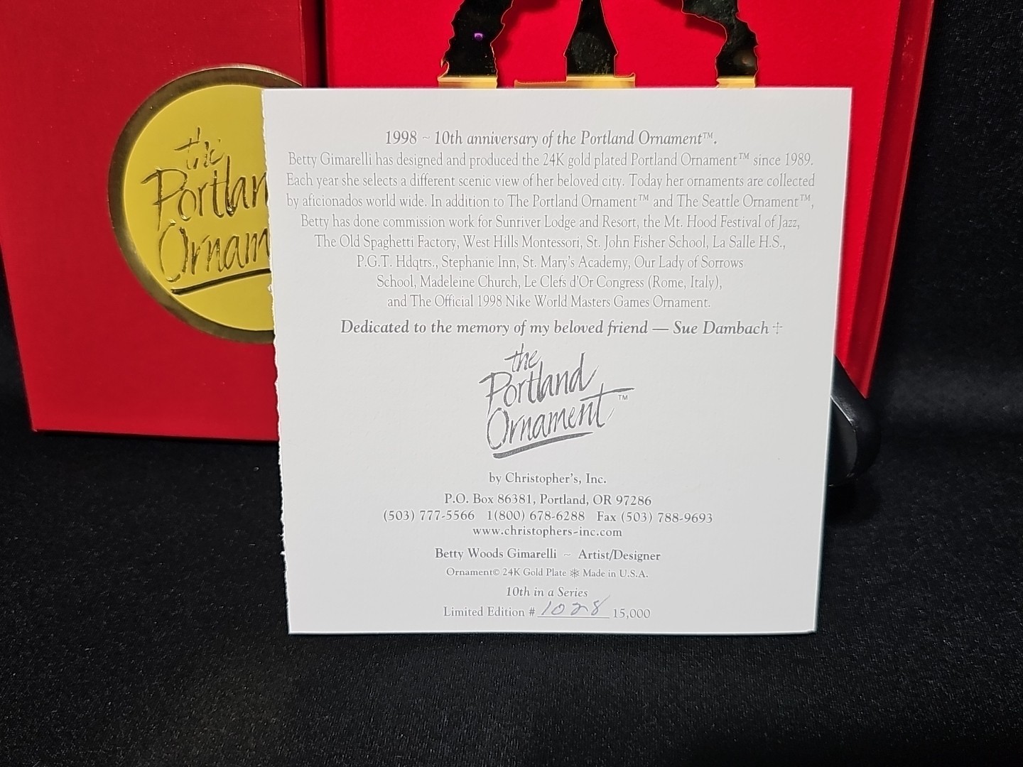 This particular ornament is #1028 of 15,000 and includes the original red collector box and numbered Certificate of Authenticity.