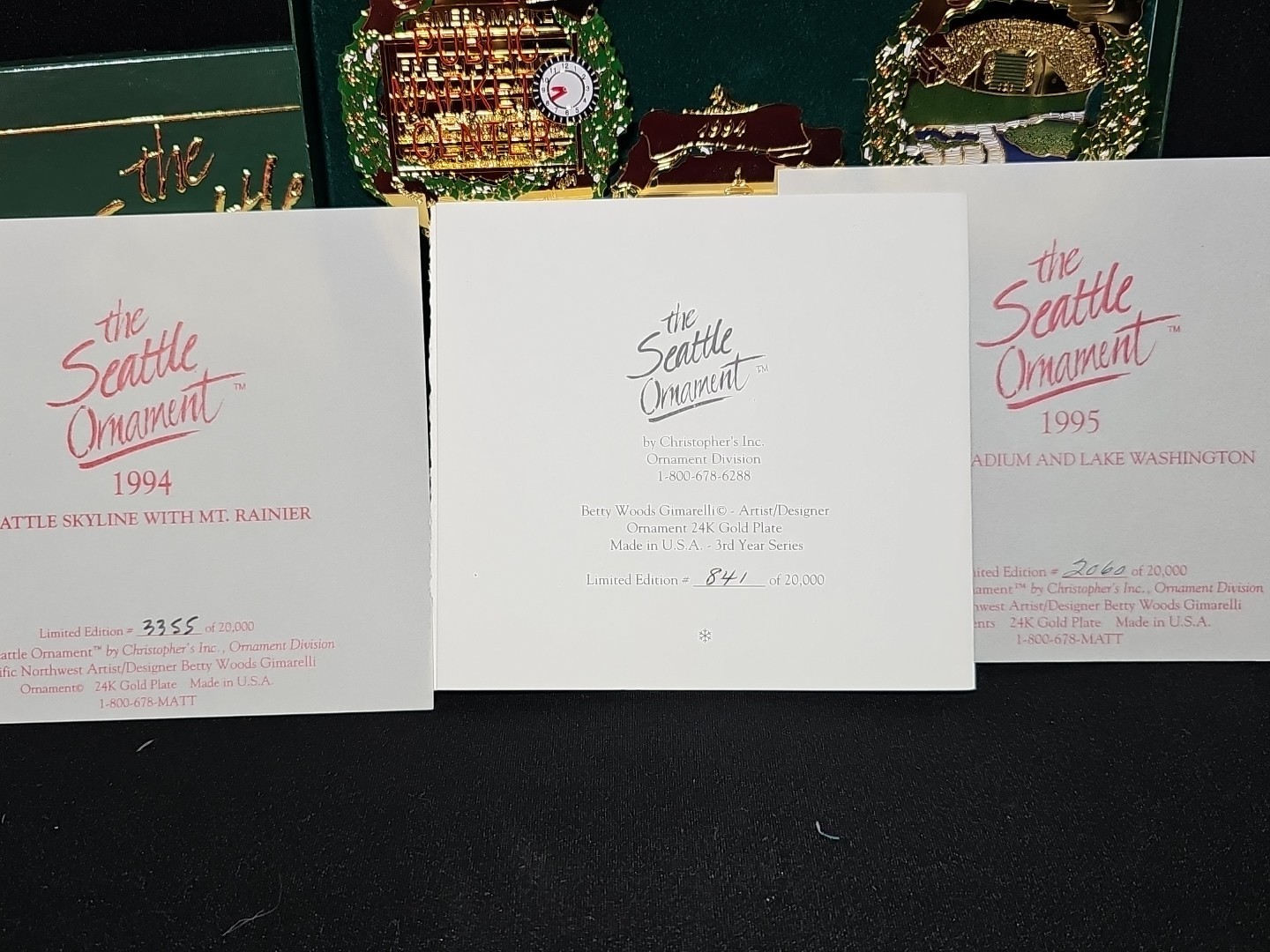 Seattle Ornament Collection Betty Gimarelli 1994–1996 COA Signed Pike Place