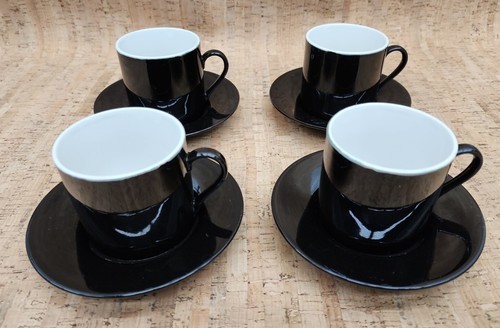 Vintage Ceramic Espresso Cup & Saucer Black And White Set of 4 Made In Japan