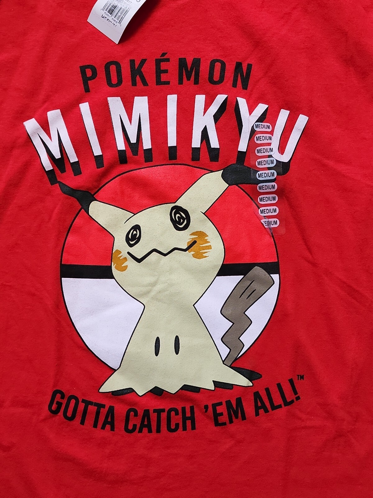 Pokémon Mimikyu GOTTA CATCH 'EM ALL! NWT Red Graphic License T-Shirt Adult Sz M