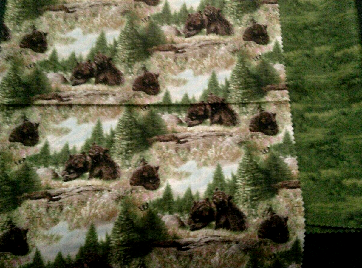 Fabric Giordano "Baby Bear Country" 2 Pc Brown Bears in the Wild Greens $2.95