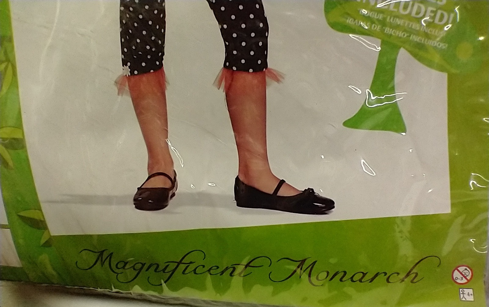 Super Cute Sassy Monarch Butterfly Themed Costume. Ages 4 and up. Size Chart in Photos and Below. Antenna Ends on headband are metal and will require some gentle shaping for desired look. DOES NOT INCLUDE WIG / HAIR or SHOES.