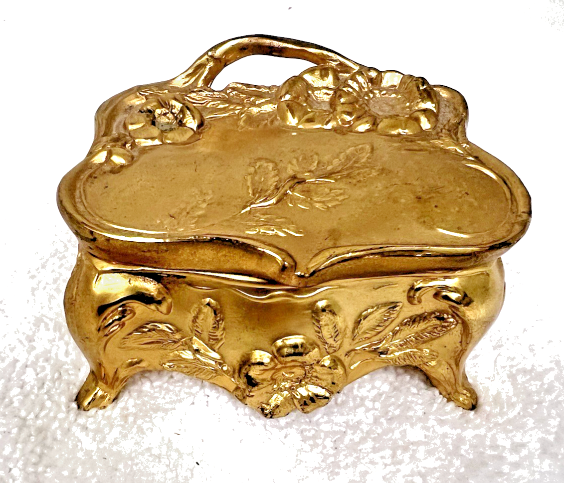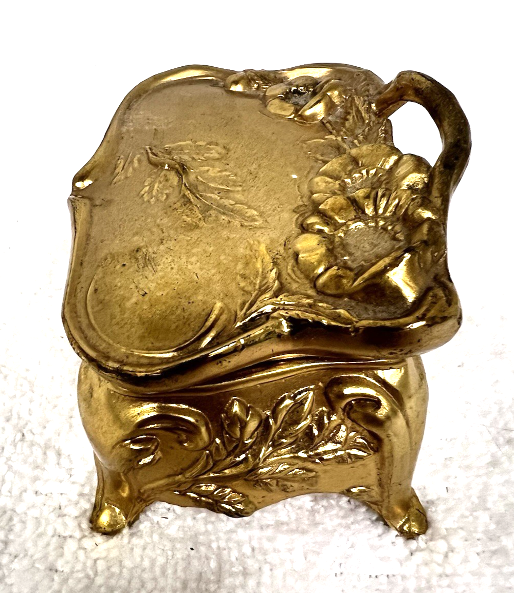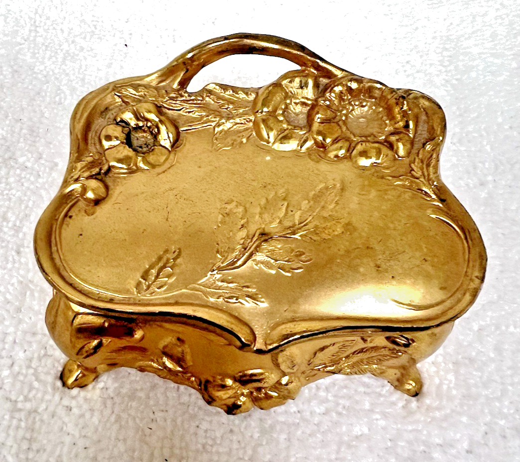 Antique Art Nouveau Ormolu Gold Casket Jewelry Display Box Floral Design
