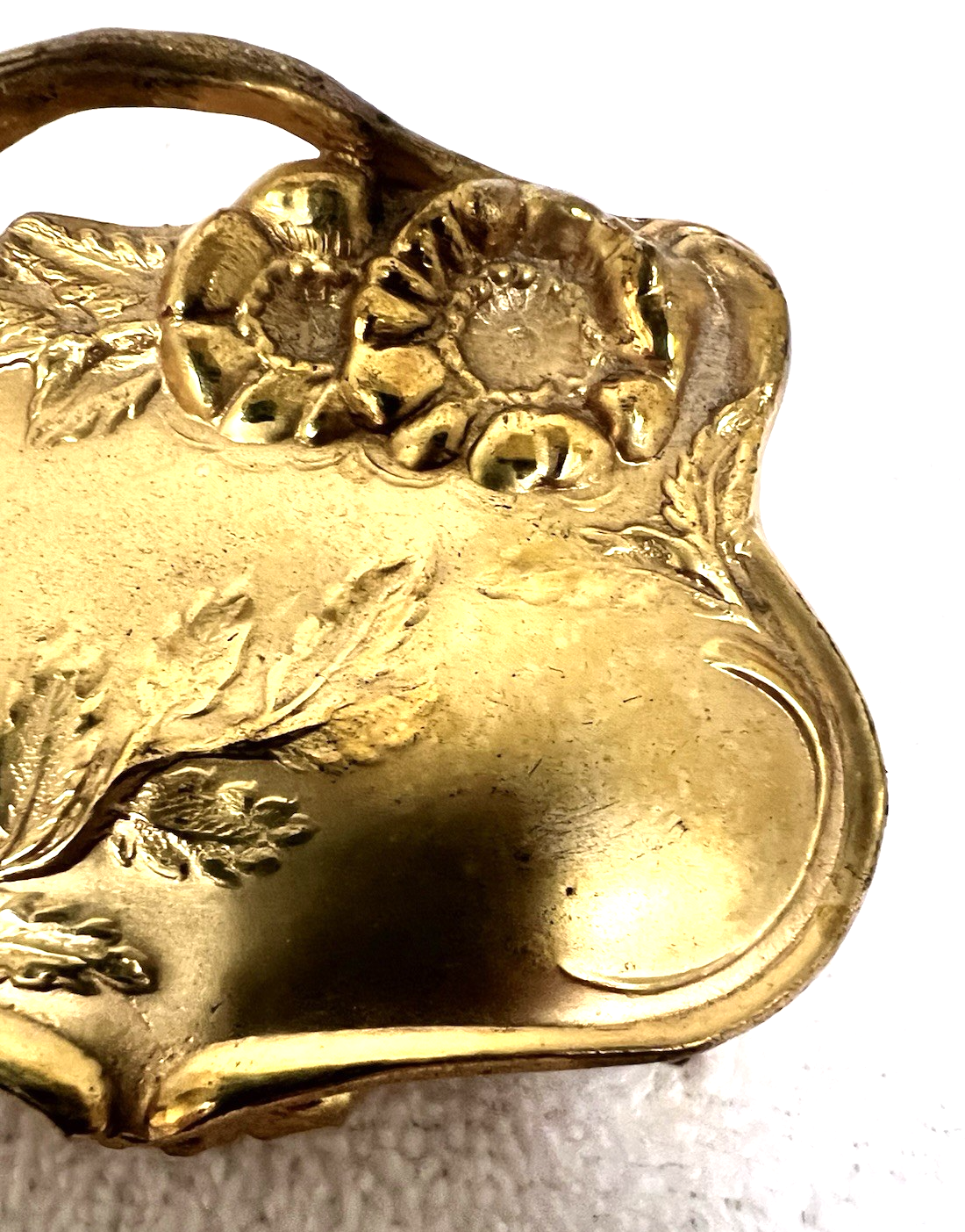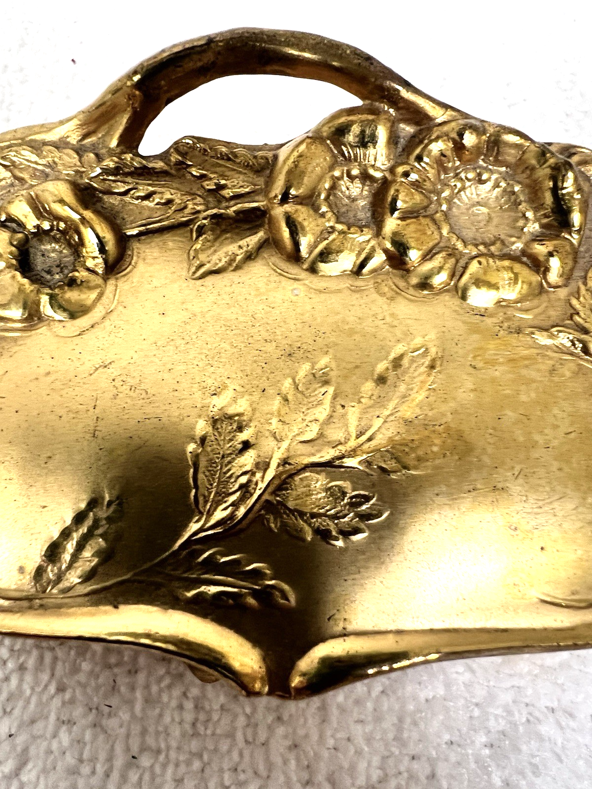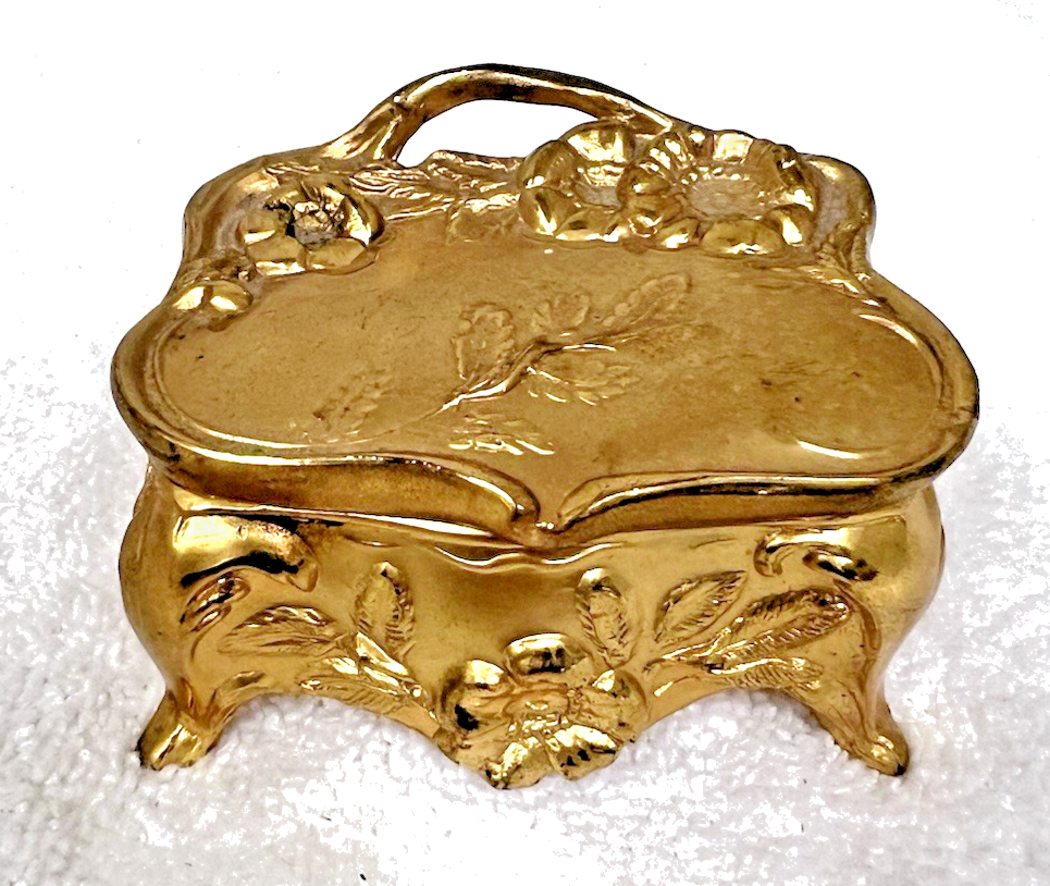 Antique Art Nouveau Ormolu Gold Casket Jewelry Display Box Floral Design