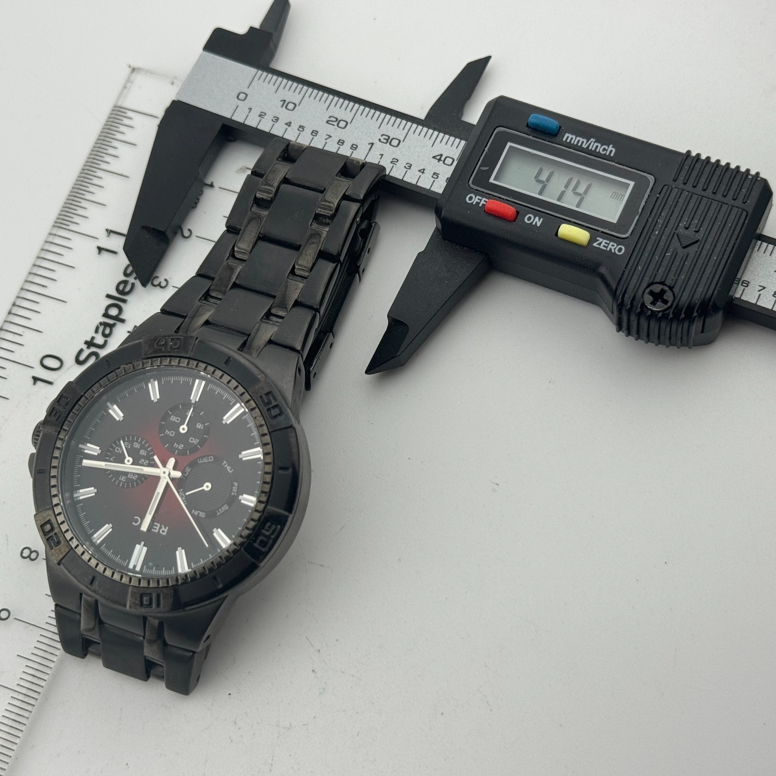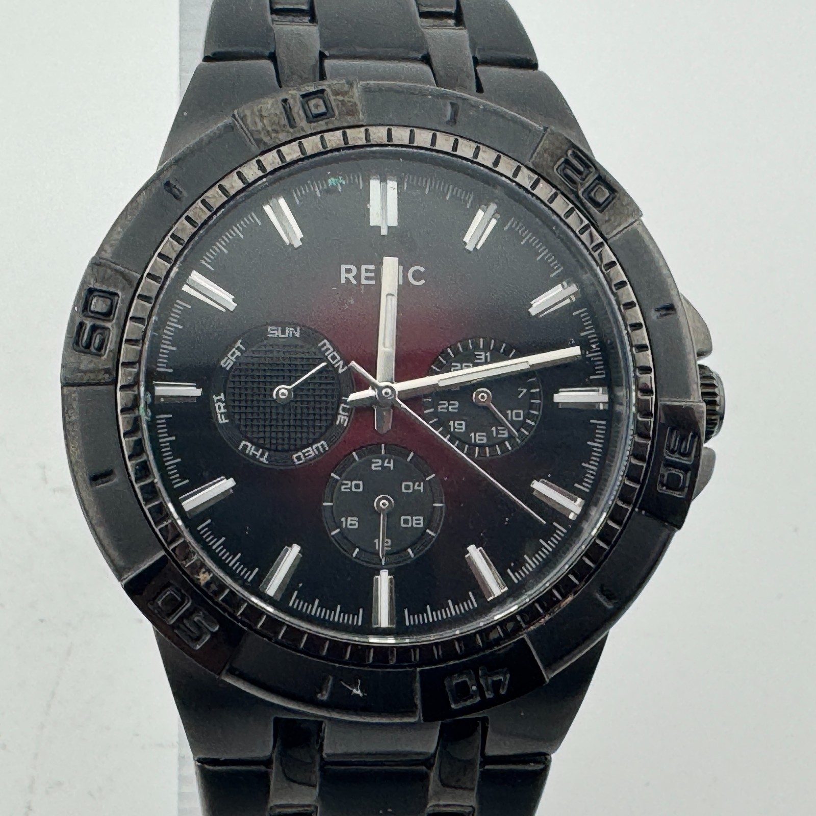 Relic Quartz Watch Men 50m Black Red Steel Rotating Bezel Analog New Batter 6.5"