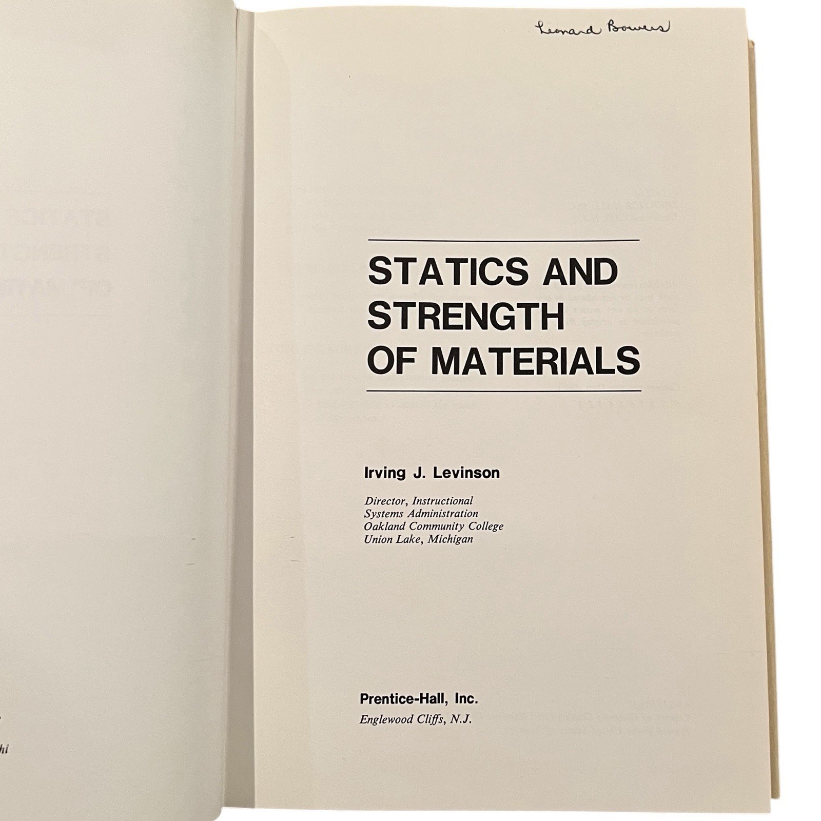 Statics and Strengths of Materials Architectural Design Irving Levinson 1st Ed