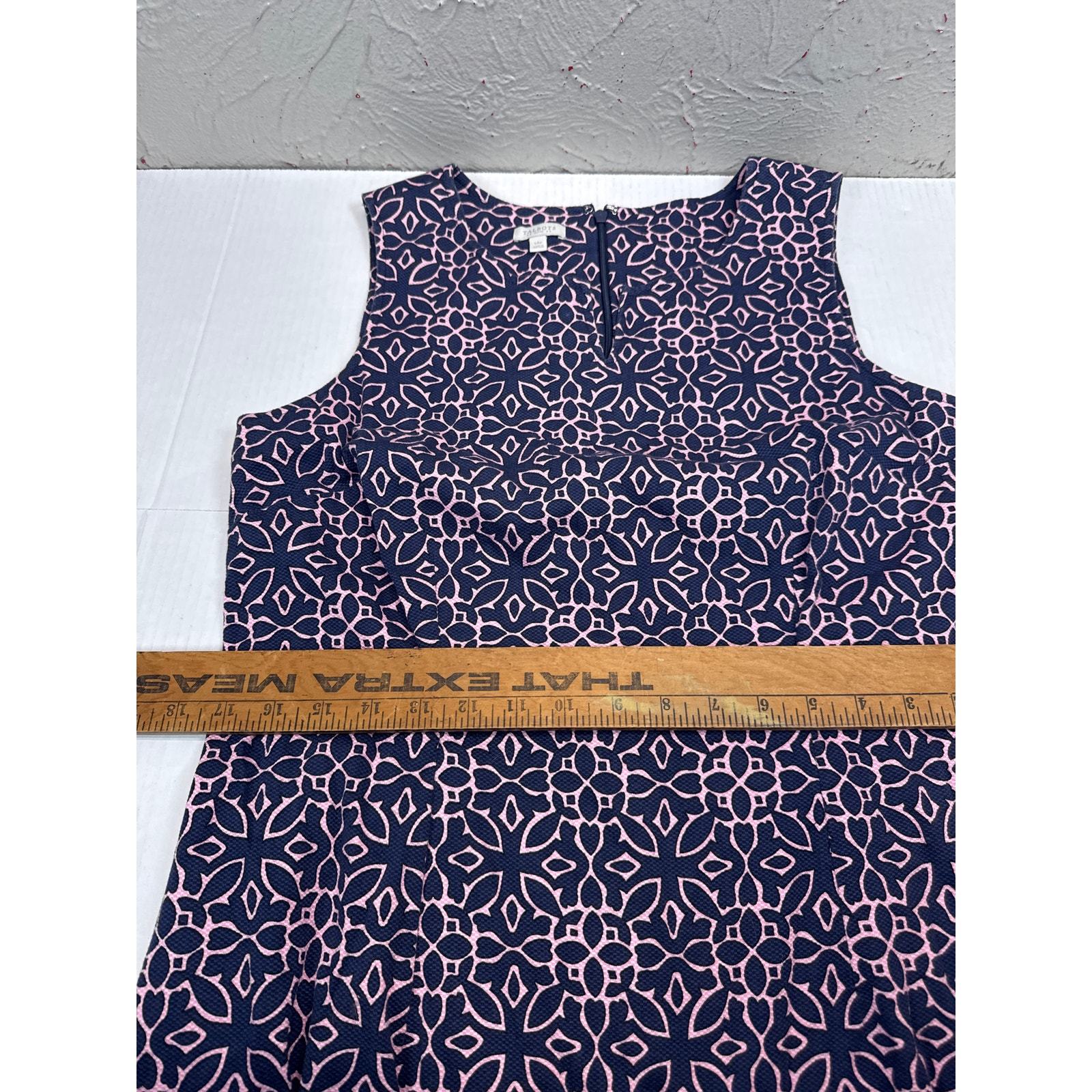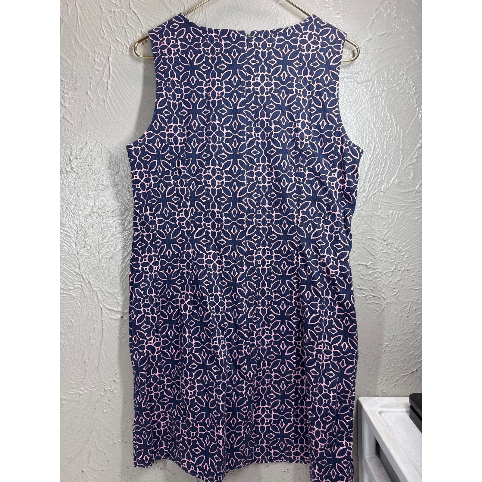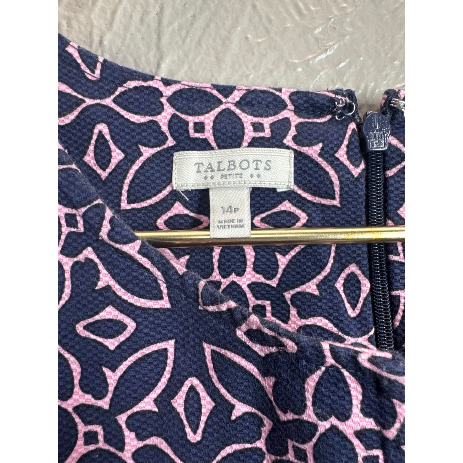 Talbots Womens Petite Geometric Sleeveless Sheath Dress Pink Blue Size 14P