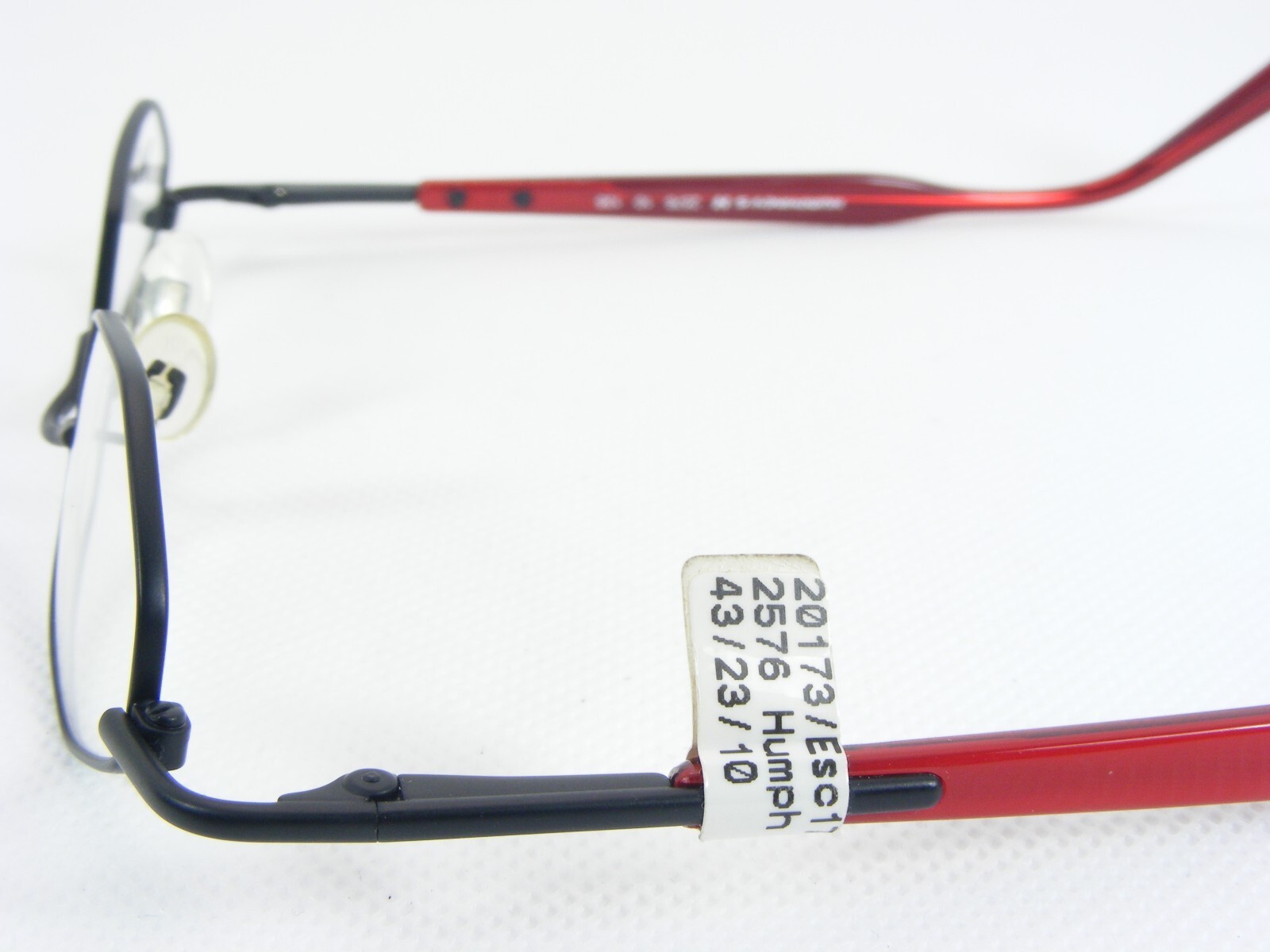 Vintage HUMPHREY'S 2576 10 MATT BLACK /RED EYEGLASSES GLASSES FRAME 43-23-135mm. (K1071) Style and comfort in everyday use. A pair of glasses is not just an accessory; it provides the first hint of an individual?s personality. The wearer must enjoy a frame and feel that it is completely consistent with his or her look and mindset. A great pair of glasses, with all its detail and complexity must above all be an extension of the individual. Glasses from HUMPHREYS eyewear have been giving faces a fresh look since 1994: bold, striking and always unique. Yesterday's news doesn?t matter tomorrow. Because HUMPHREYS glasses from Eschenbach Eyewear offer trends and variety by the bucket-load. For people who like to be ahead of their time. Returns are always FREE for any reason. If you don't