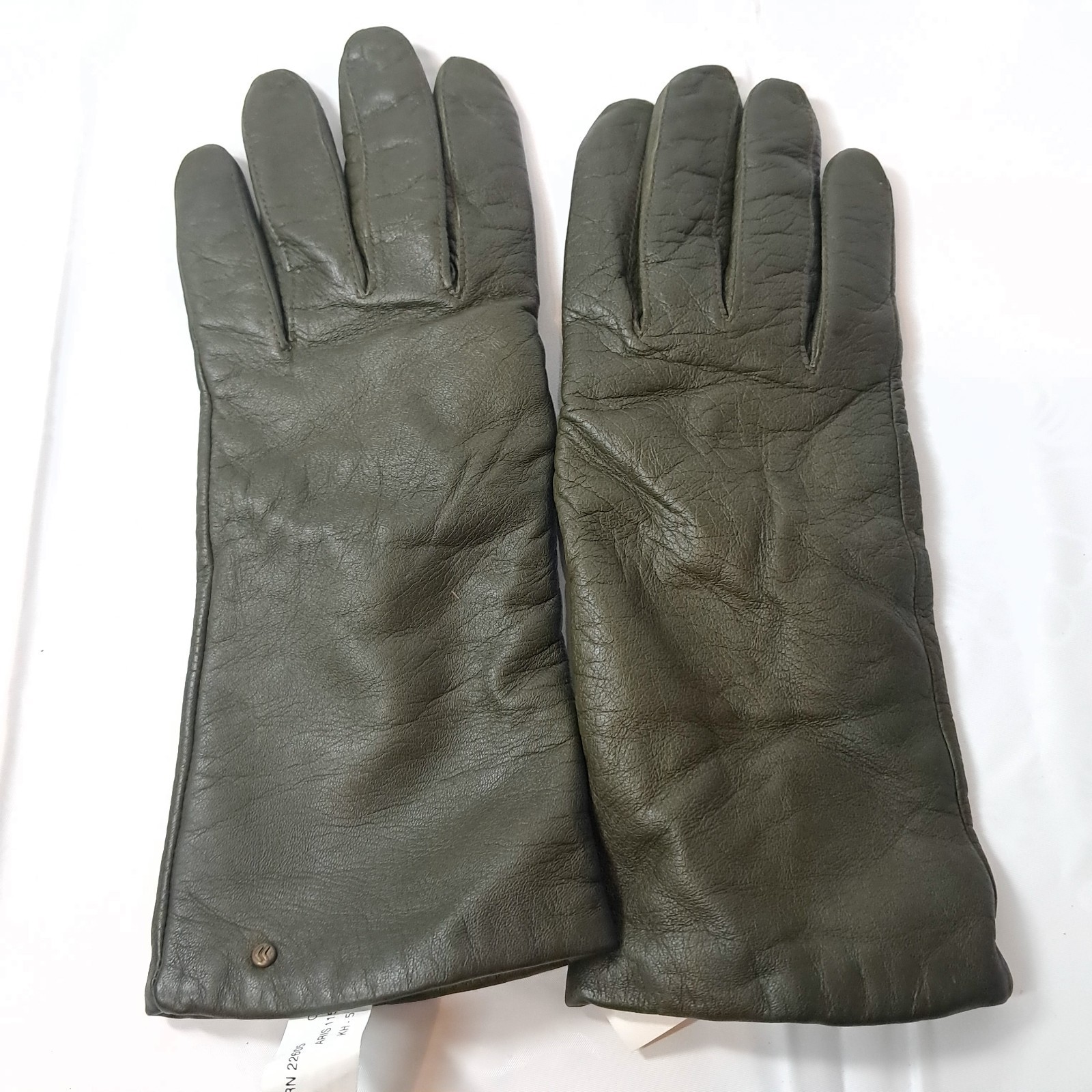 Vintage Aris Leather Gloves Cashmere Lined Womens Size 8 olive Green style 84712