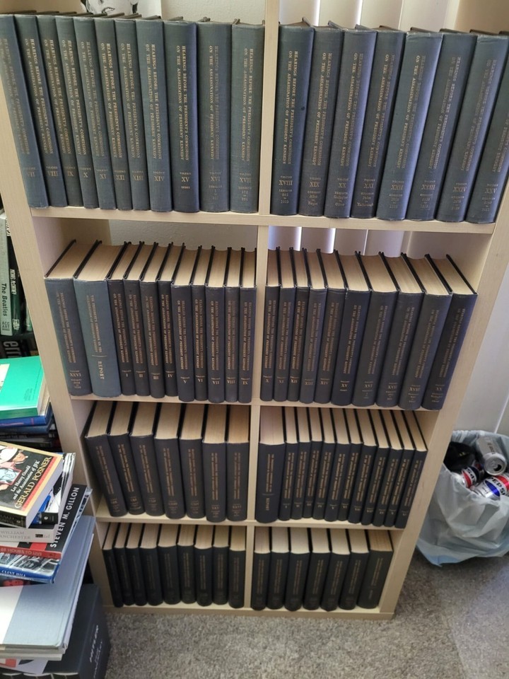 For sale is the complete Warren Commission Hearings Report (27 Volumes) on the assassination of President Kennedy. According to the National Archives, 5,600 sets of the Warren Commission Hearings were published and purchased in 1964. I own four of those sets. All four of the sets are in very good condition.