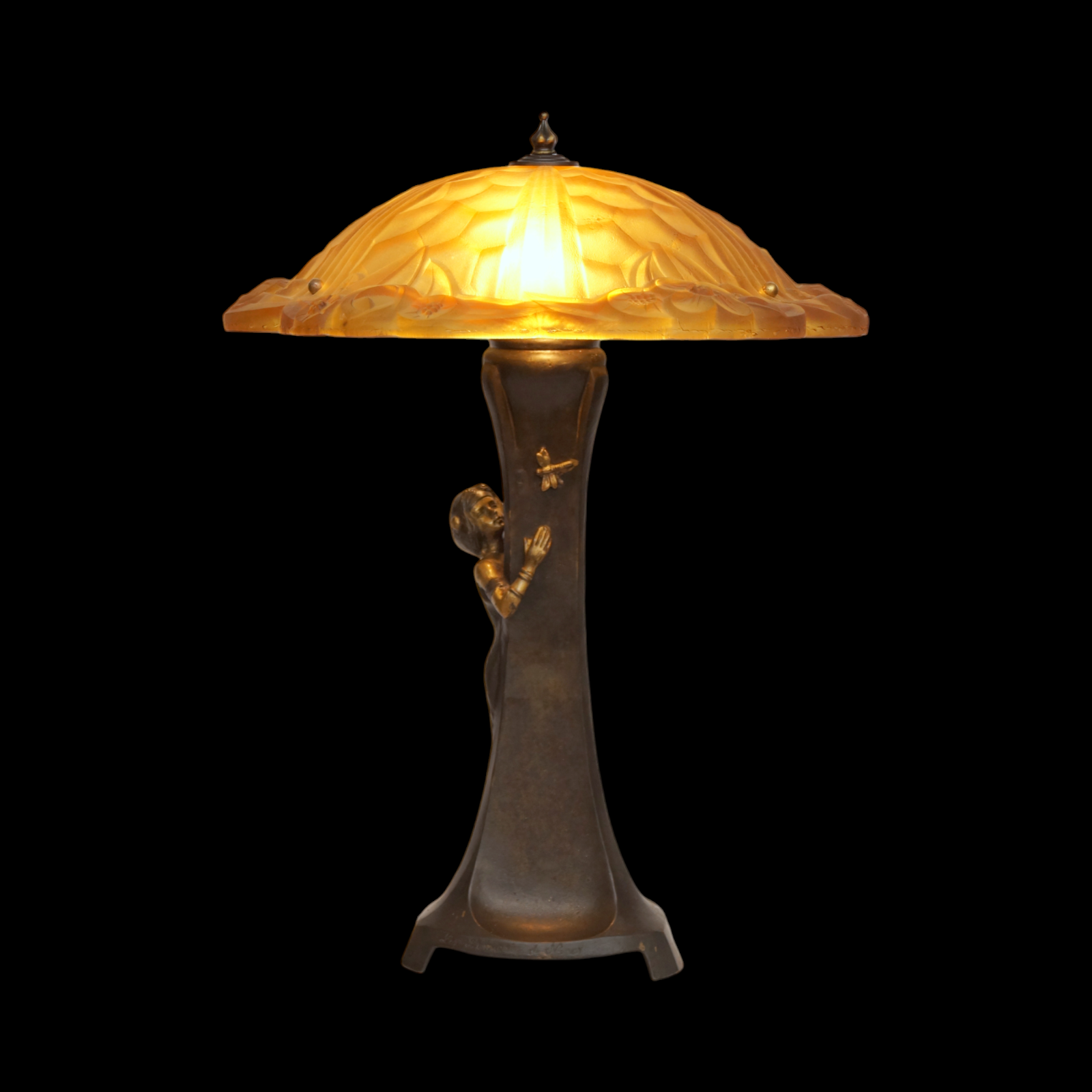 Absolutely unique bronze youth style/Art Deco table lamp "Dragonfly Maiden".