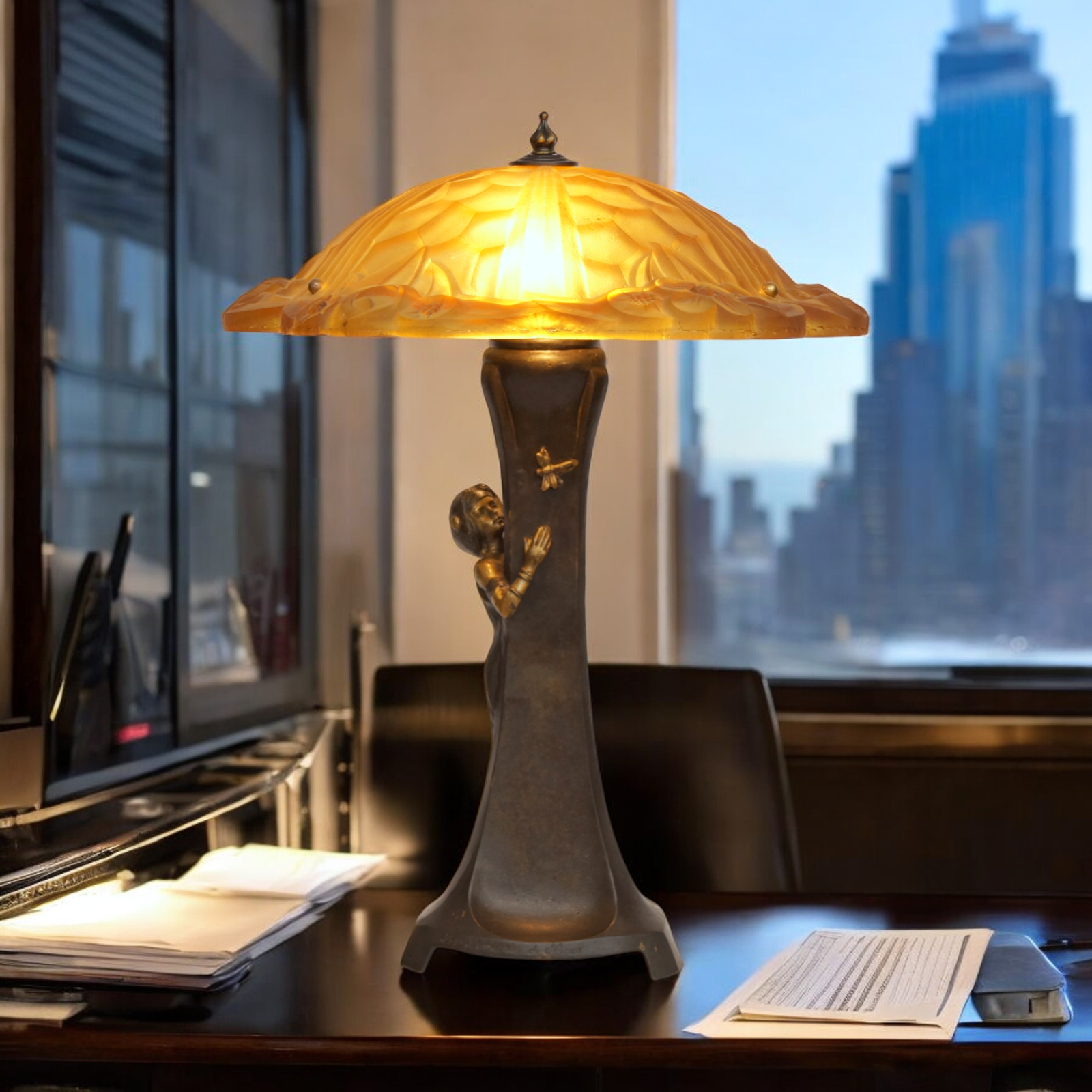 Art Deco Table Lamp Antique Signed Glass Brass Lamp Design Unique Banker