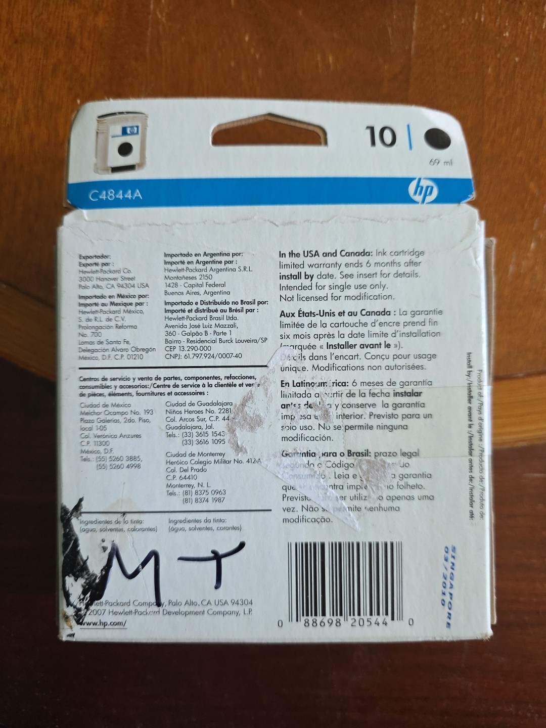 The Genuine OEM HP 10 Black Ink Cartridge C4844A is a high-quality, original product manufactured by HP in Singapore. This ink cartridge is specifically designed for use with HP printers, such as the Business InkJet 1000 model. With a print technology of inkjet, this black cartridge is ideal for producing professional-quality prints with crisp and clear details. The product is brand new in its original packaging and is compatible with HP printers. It has an expiration date of March 2010, making it a reliable option for those in need of black ink cartridges for their printing needs.