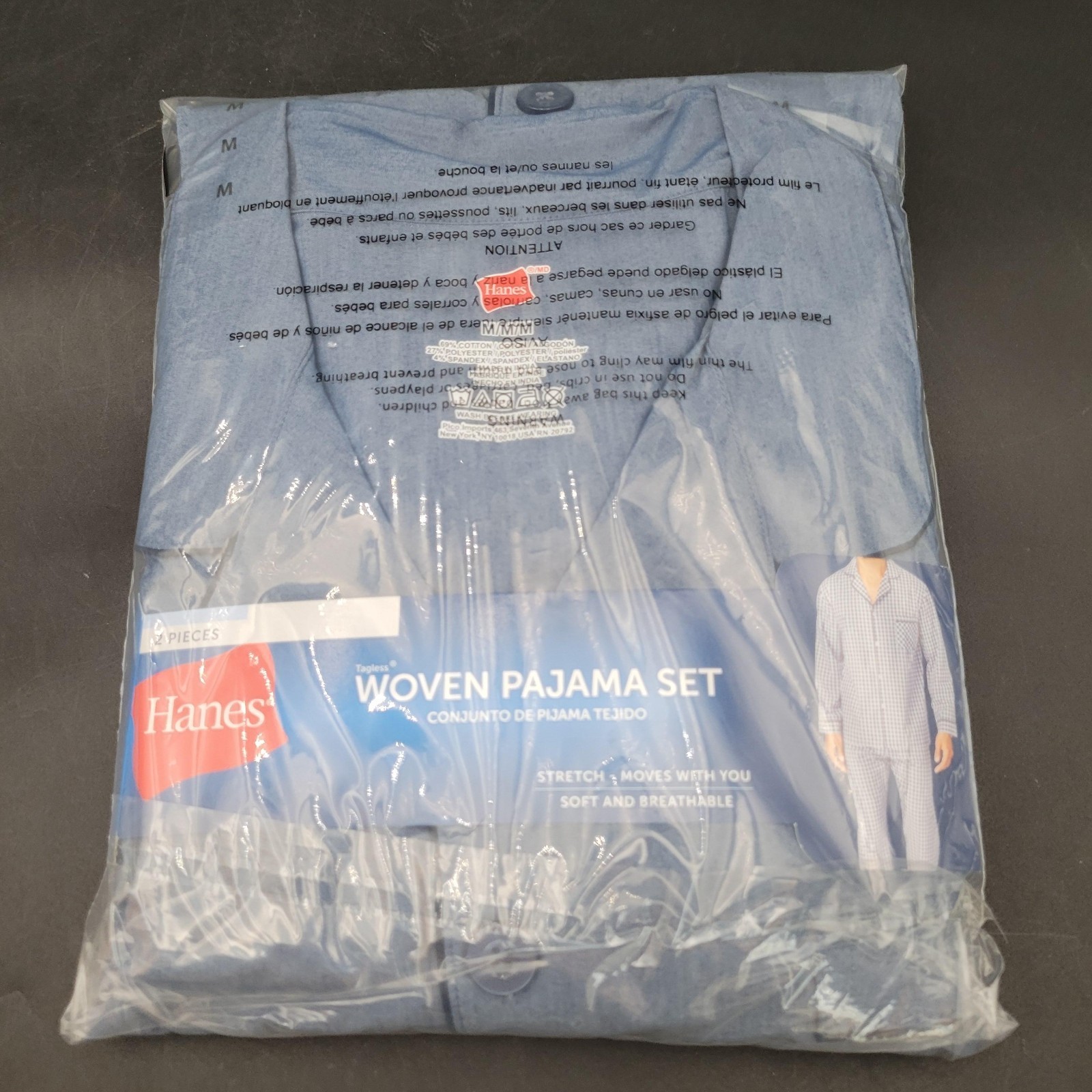 New Hanes Mens Woven Pajama 2PC Set Long Sleeve top Long Leg Pant Size Med Blue
