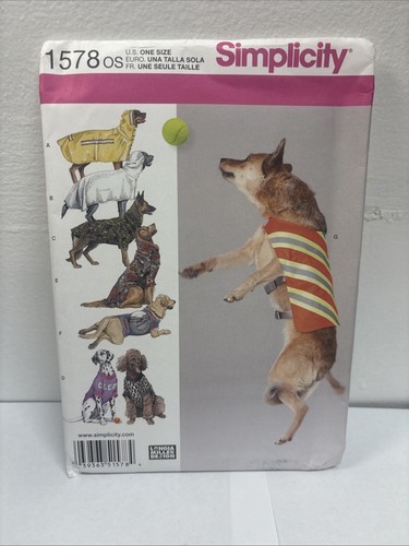The product is a Simplicity 1578 dog clothes pattern for large dogs, featuring designs for coats, bathrobes, and shirts. The pattern is uncut, allowing for the creation of custom clothing for furry friends. With a focus on simplicity and practicality, this pattern provides a variety of options for dressing up pets in style. Perfect for those looking to sew their own unique and comfortable outfits for their large dogs.