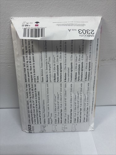 Simplicity Sewing Pattern 2303, Xl Size Dog and 50 similar items