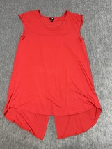 Cable & Gauge Shirt Womens Medium Red V Neck Cap Sleeve Split Back High-Low Hem