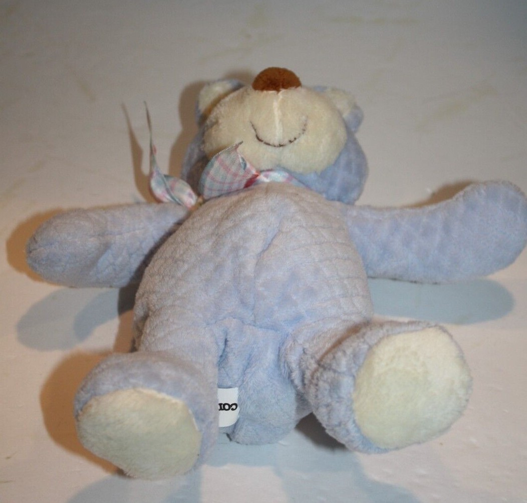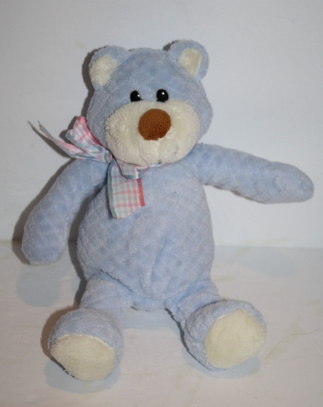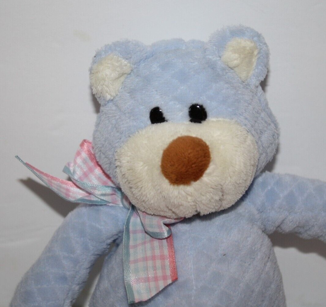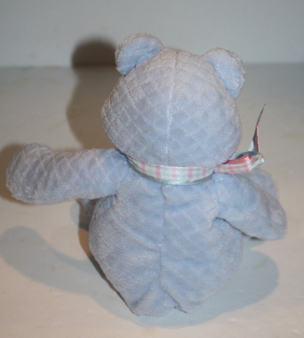 Commonwealth Teddy Bear Rattle 10" Blue Quilted Plush Plaid Bow Stuffed Soft Toy
