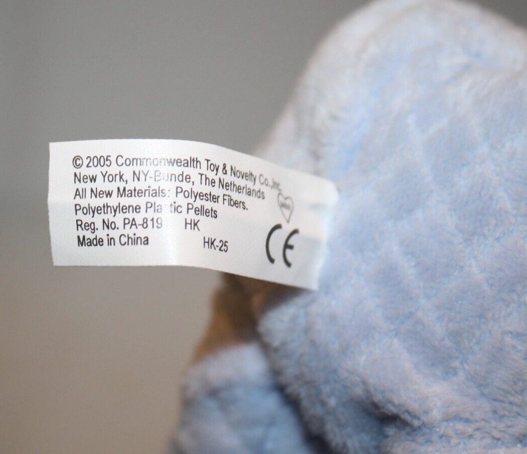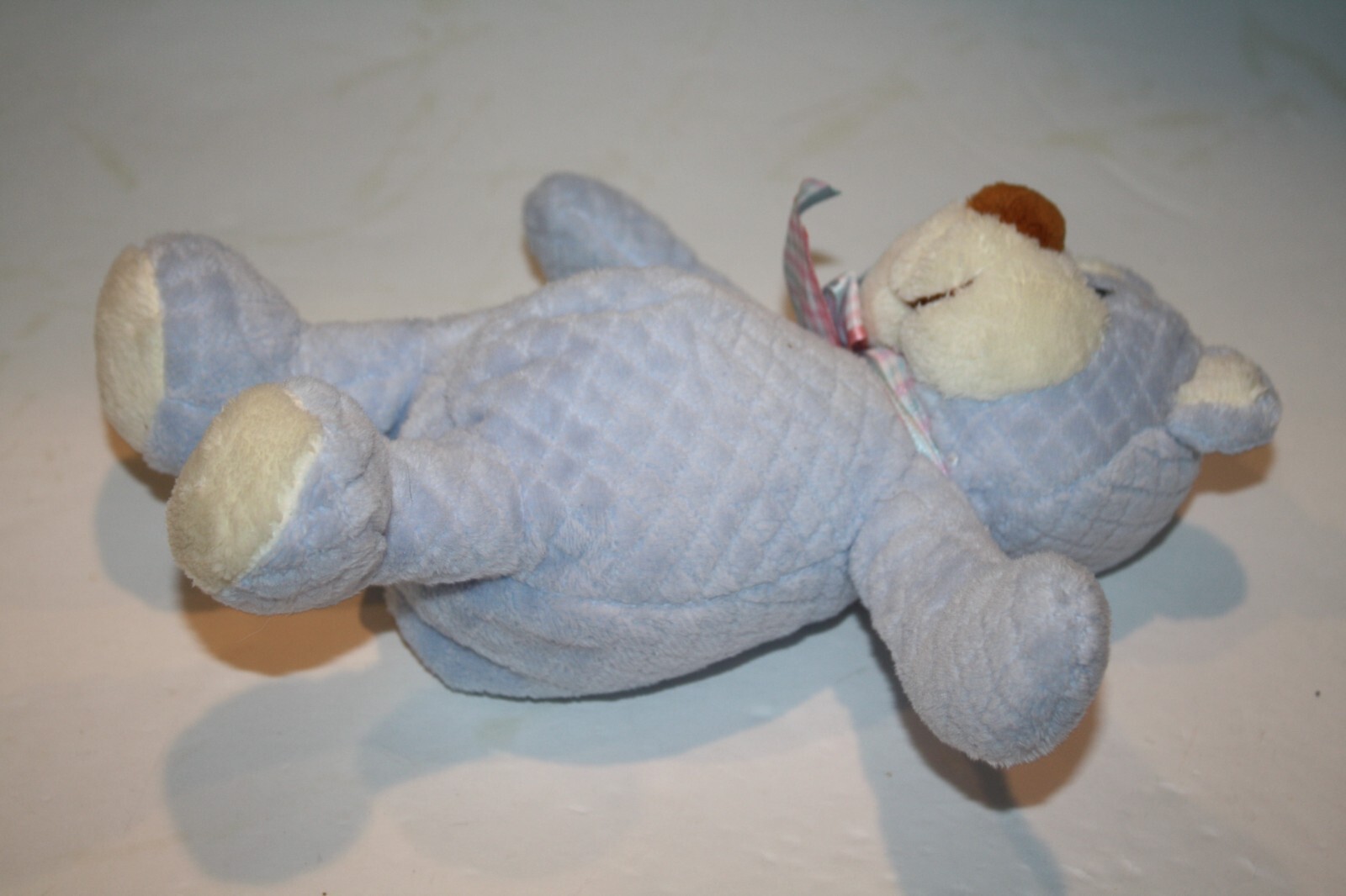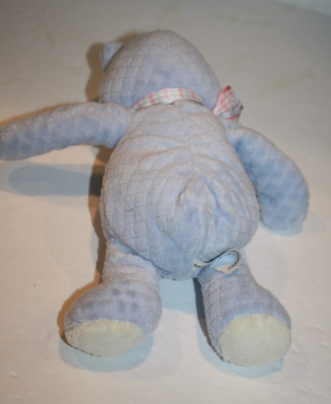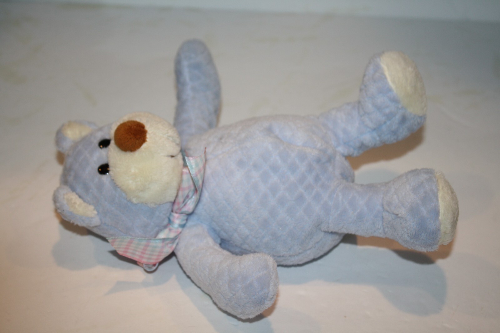 Condition: Great Condition! The very buttery soft plush material is a beautiful light blue (looks quilted) and off-white color. Inner rattle. Smoke-free environment.